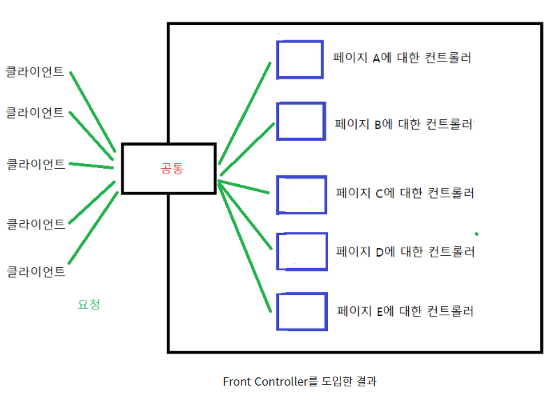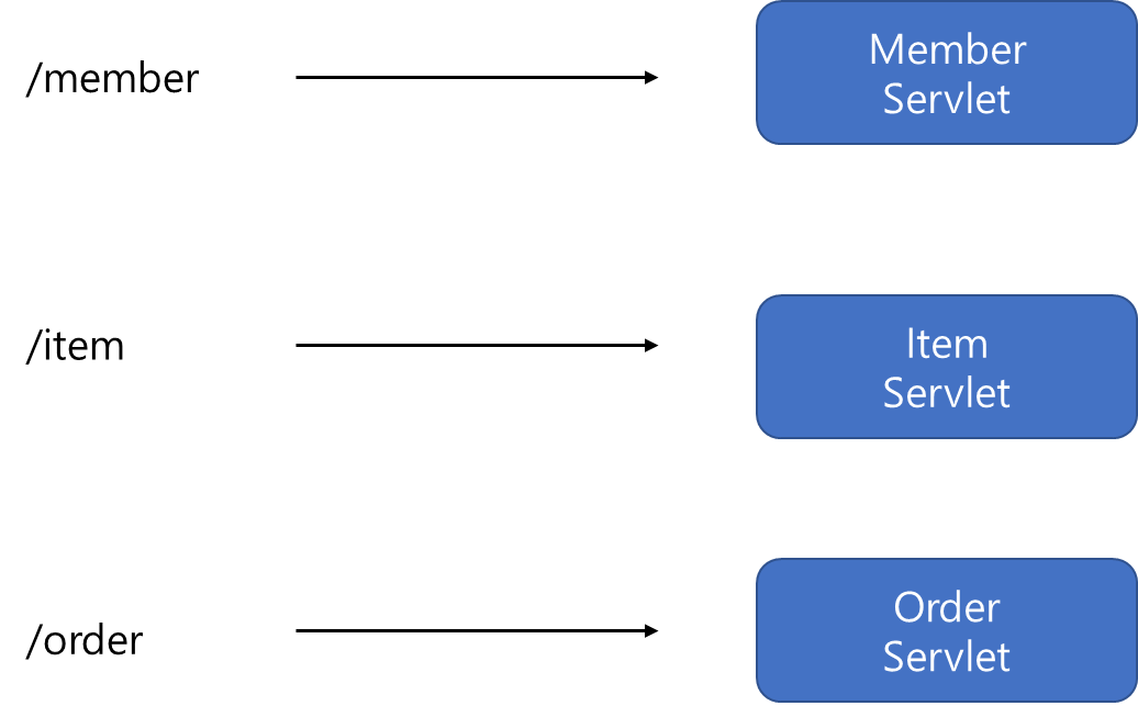 이렇게 구성함으로써 요청을 받는 로직과 실제 비즈니스 로직을 분리할 수 있으며, 요청을 받고 각 서블릿을 호출해주는 부분을 한 곳에서 관리할 수 있기 때문에 유지보수에도 훨씬 좋은 구조가 된 것이다.