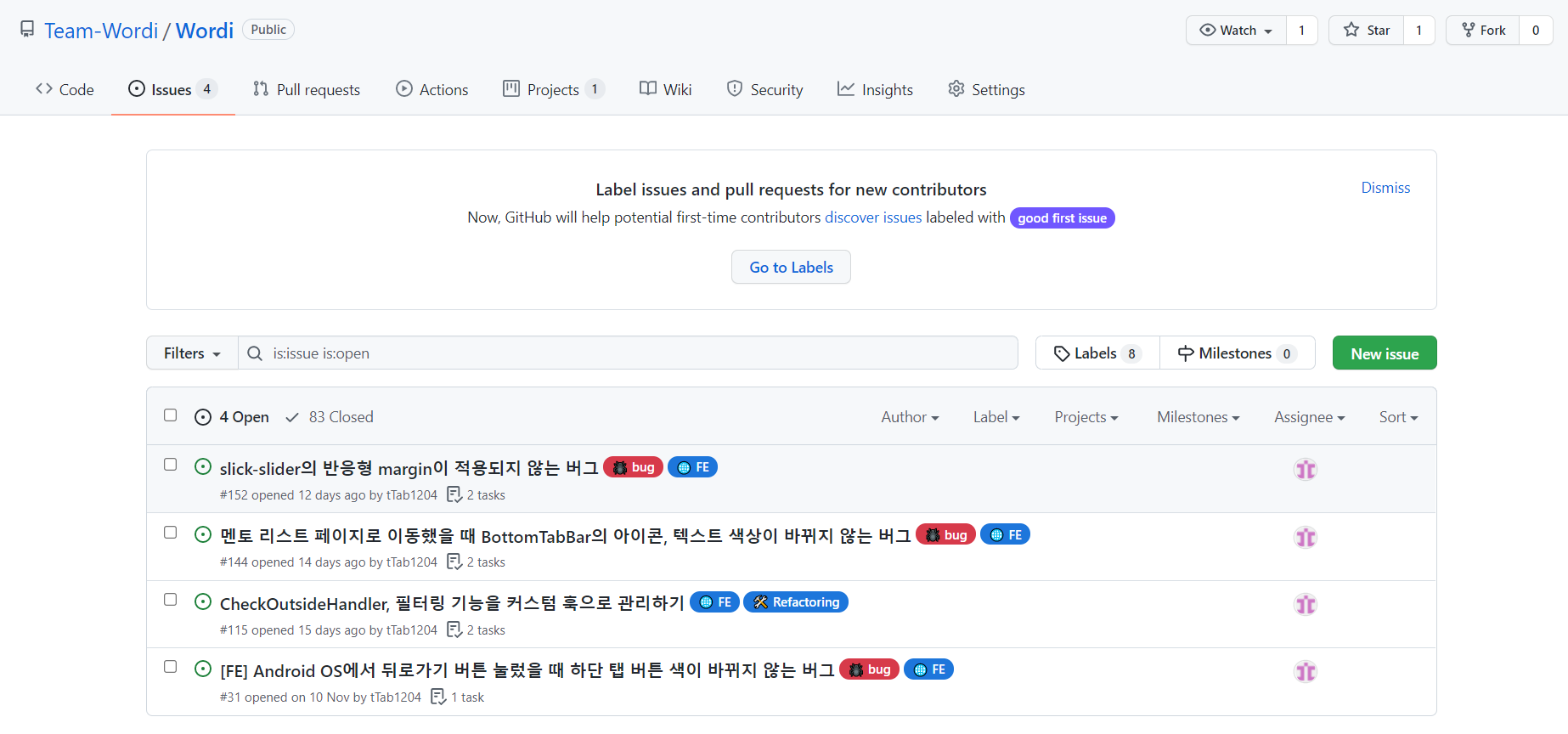 깃허브 상단을 보면 Issue 탭이 있다.