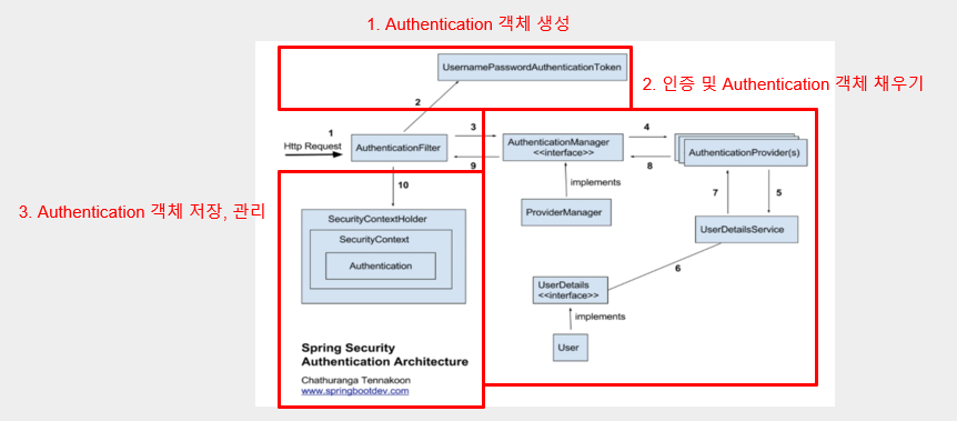 - AuthenticationFilter는 Authentication 객체를 SecurityContextHolder에 저장